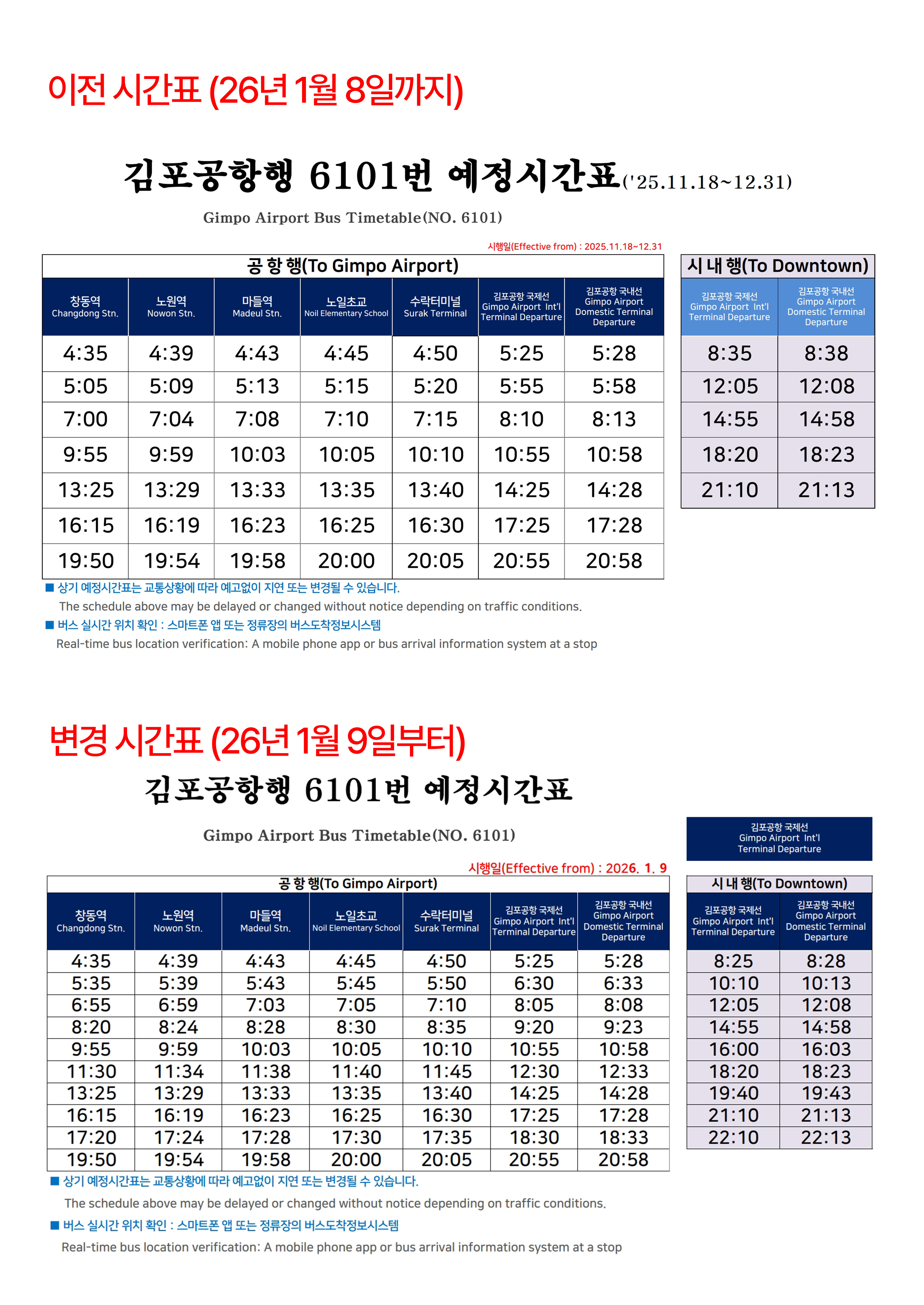 김포공항 6101번 시간표(2026. 1. 9일부터)
