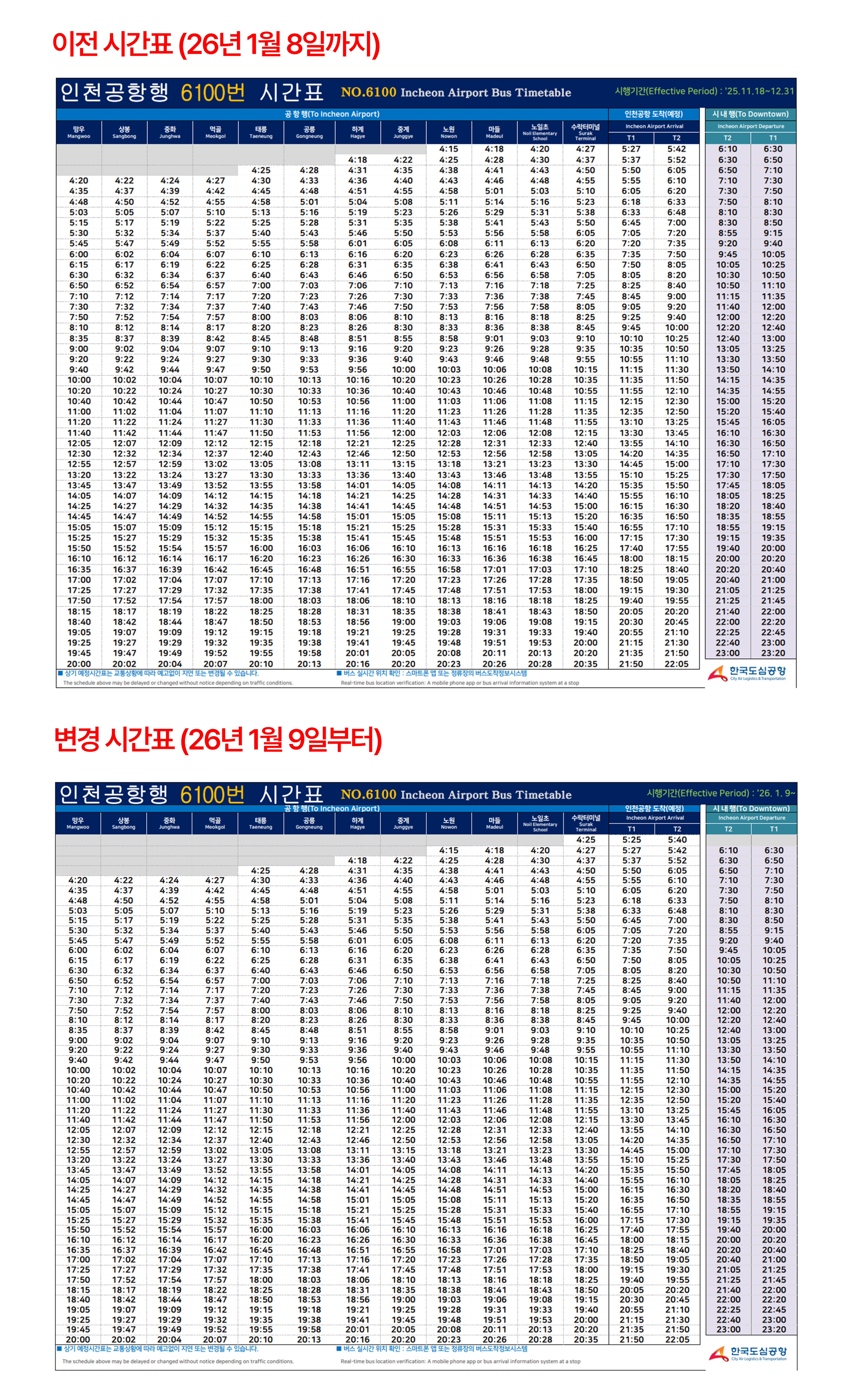 인천공항 6100번 시간표(2026.1.9부터)