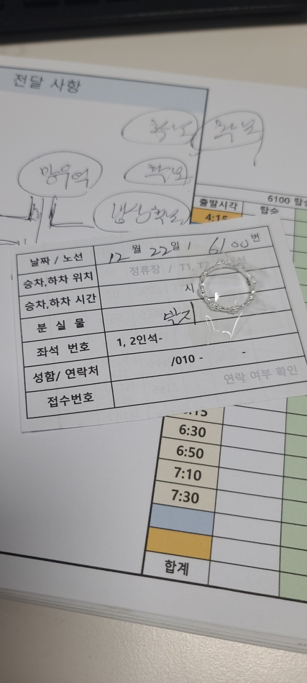 (※분실품 수령 방법: 분실물센터 방문 수령)